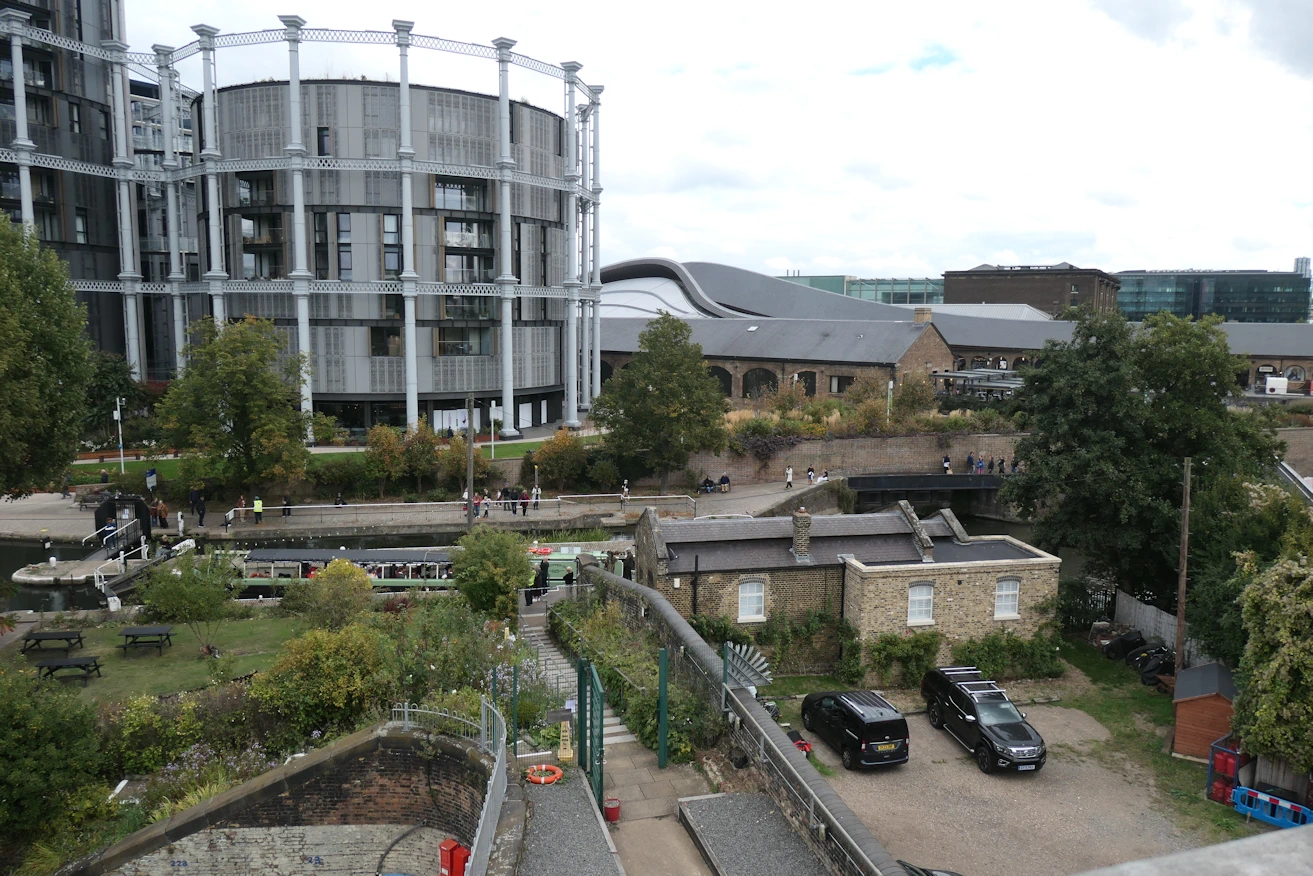View from moved water tower Walk along Regent's Canal to King's Cross