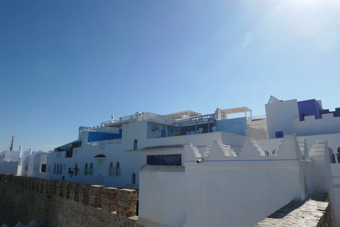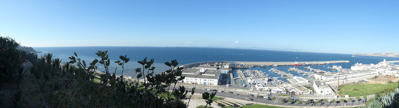 Panorama from Casbah over port and to Sppain Medina Tangier