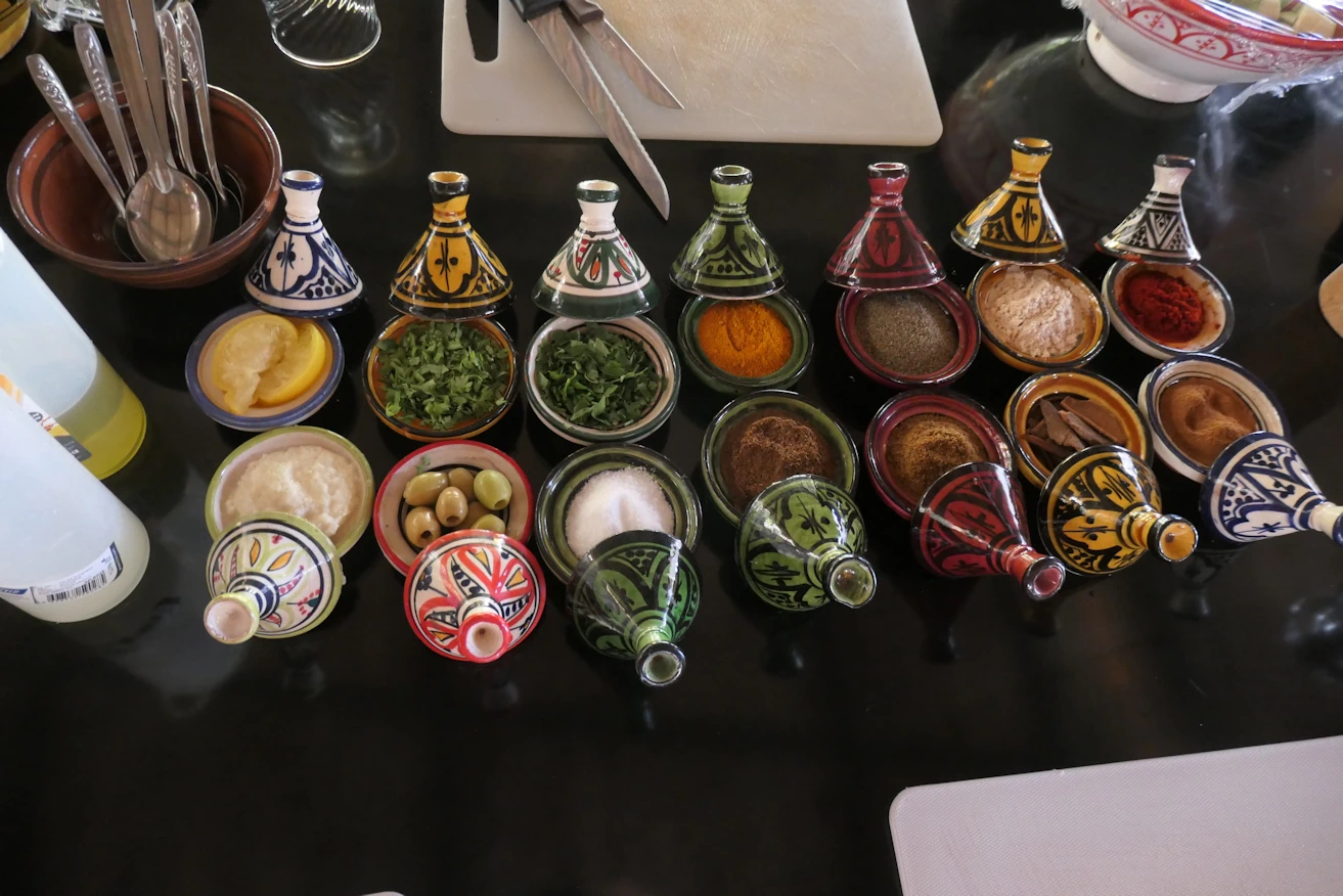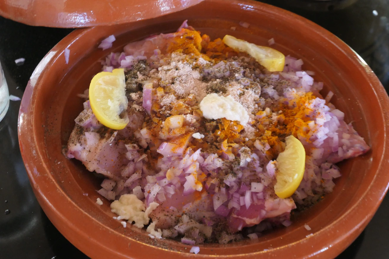 The chicken targine all ingredients precooking – Cooking class at Tahnaout