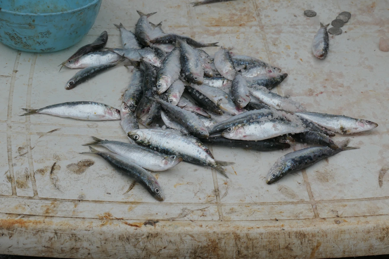 Sardines, squid, prawns, small sharkes and other fish fish market in Essaouira
