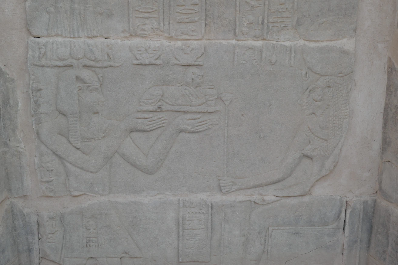 Stone with Hathor on front and crocs on top Crocodile Museum