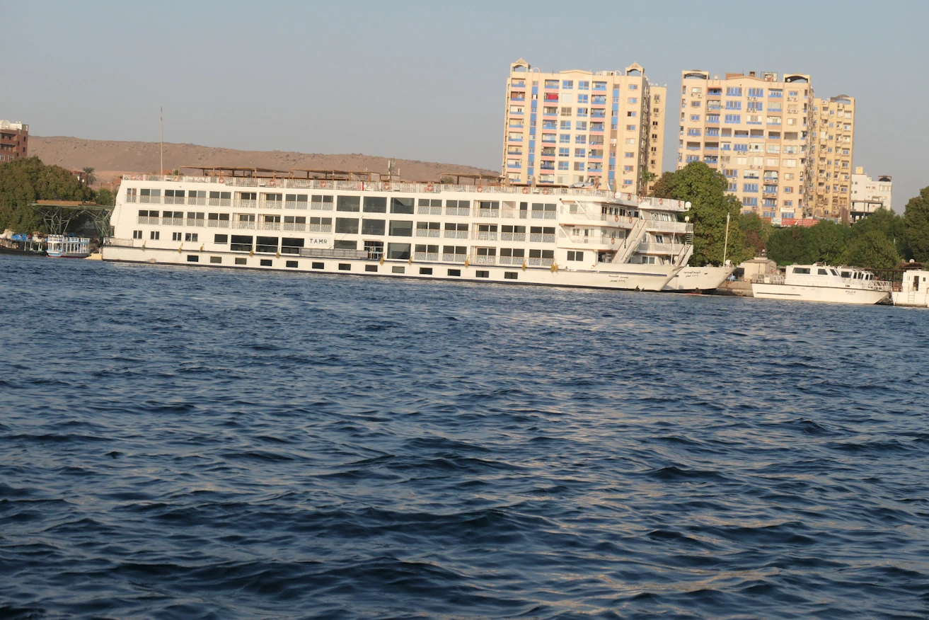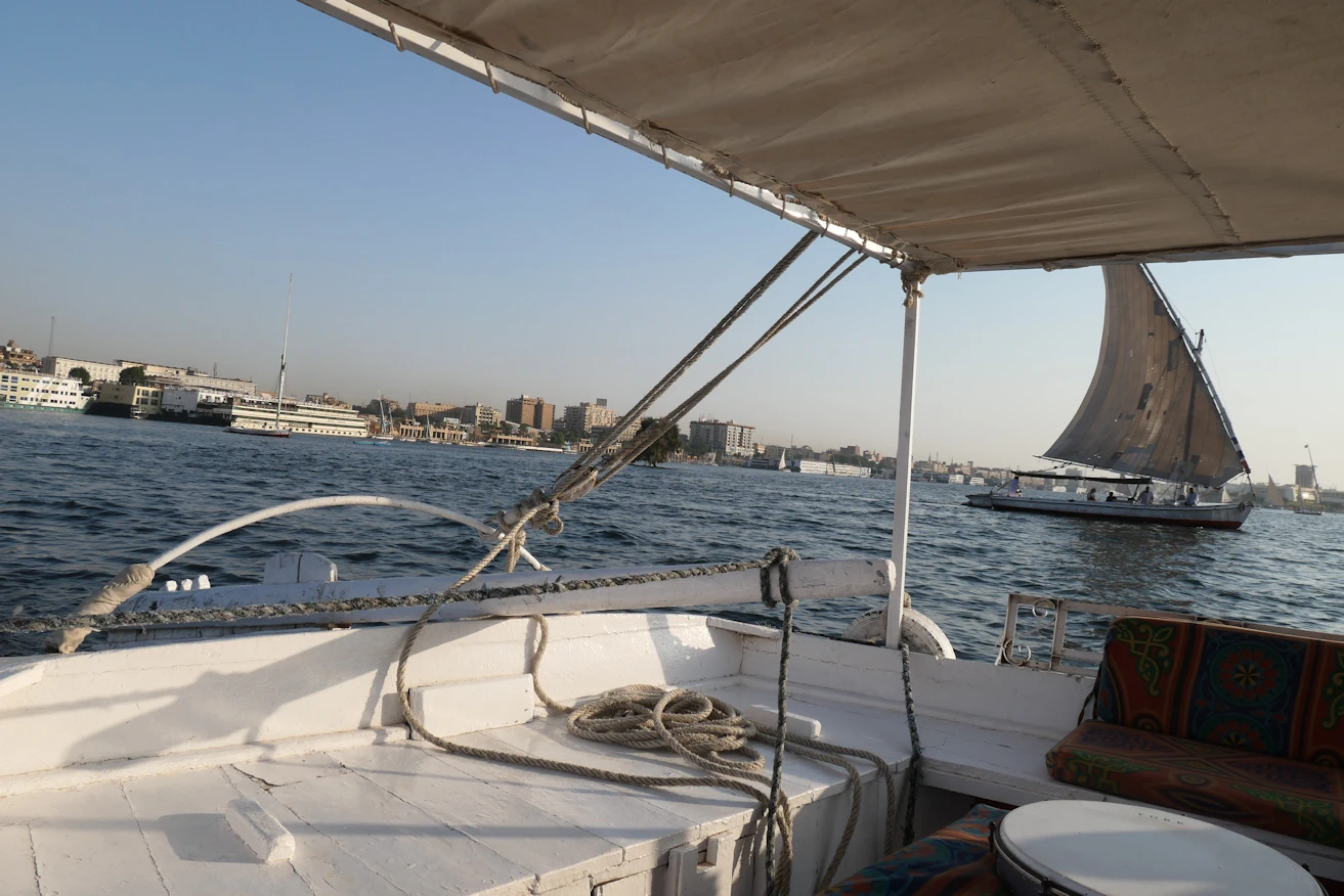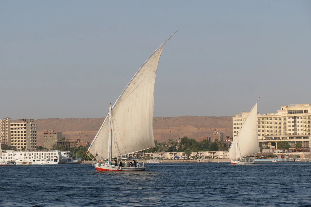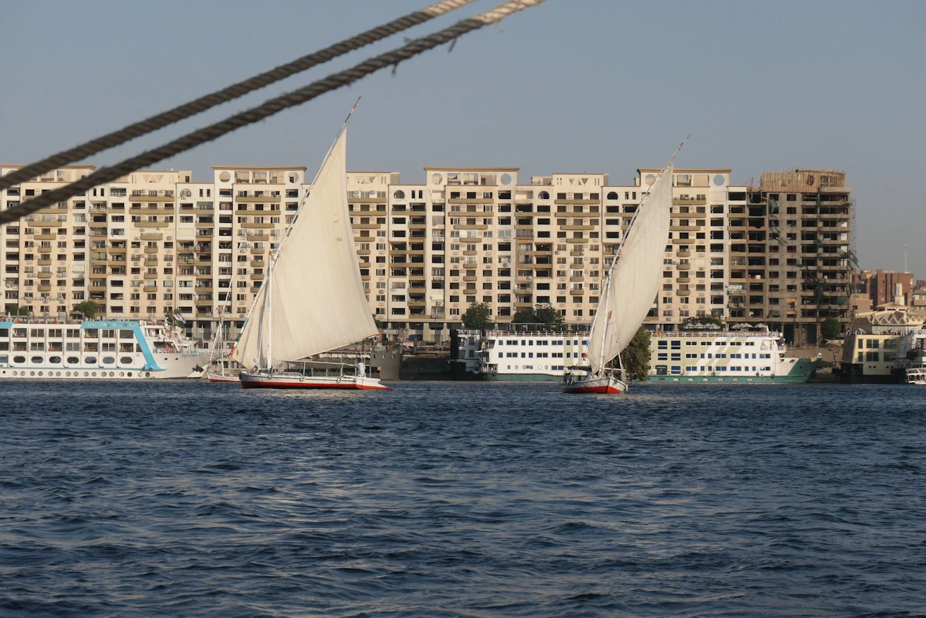 Two feluccas in fromt of new appartment block Sailing in a felucca