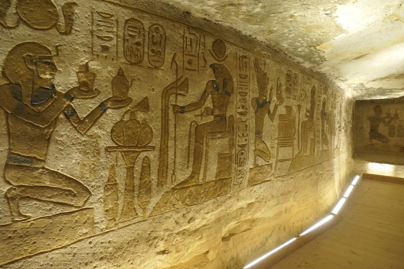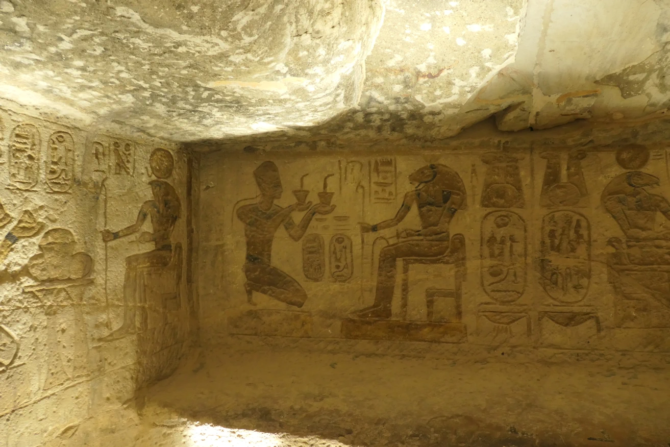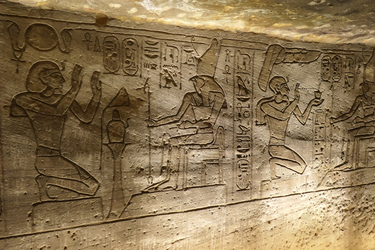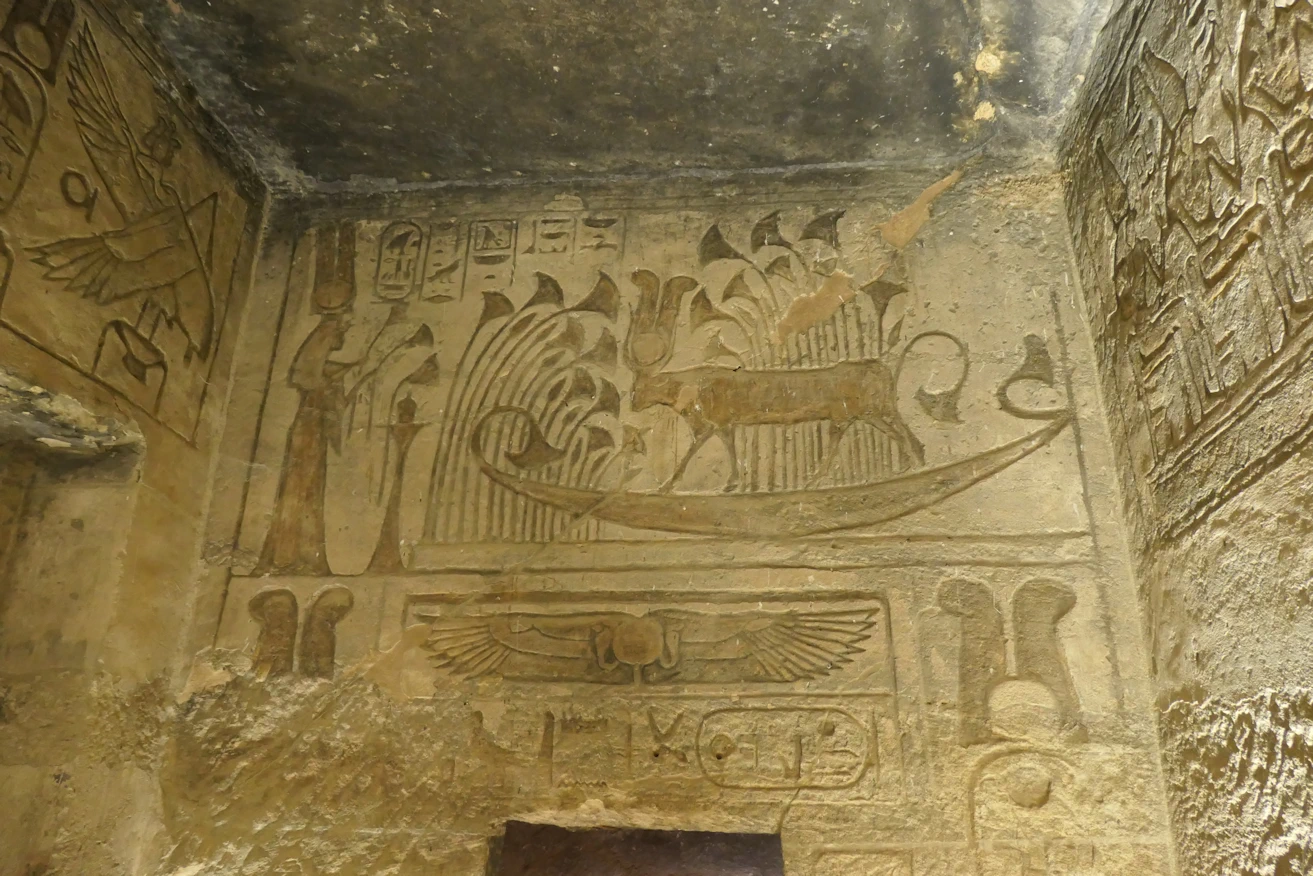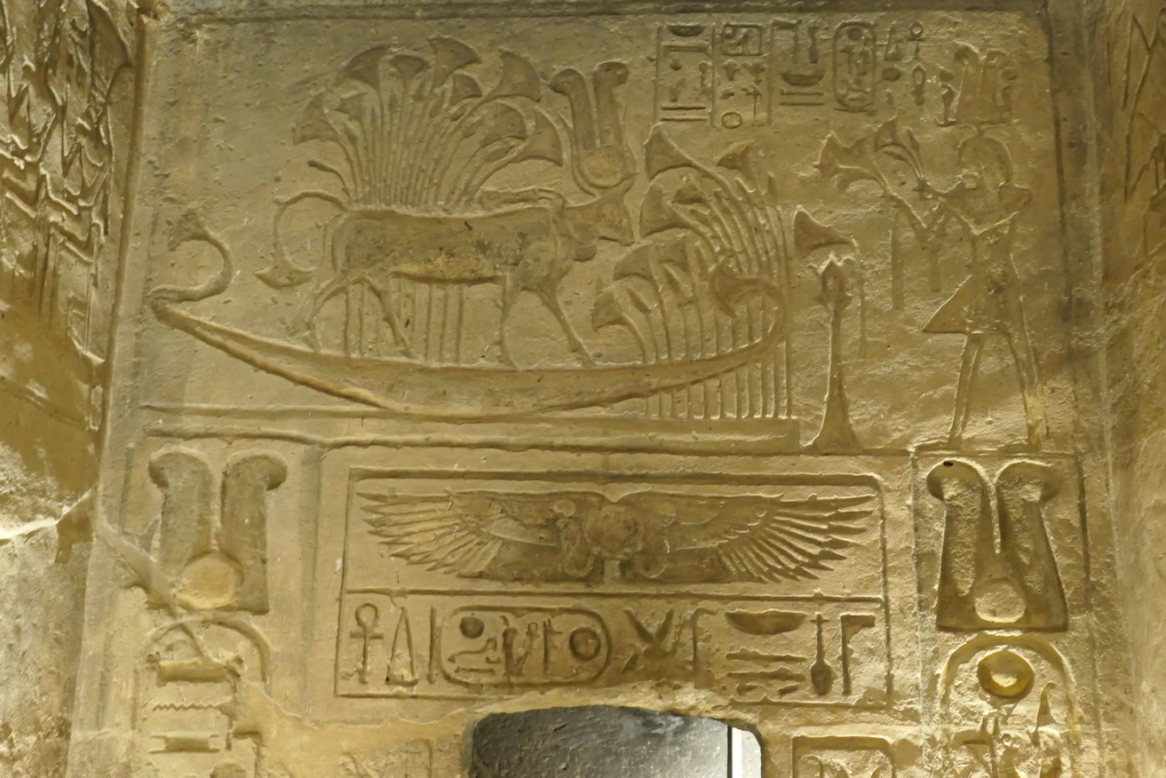 Nefatari's Temple interior Hathor on a boat Abu Simbel