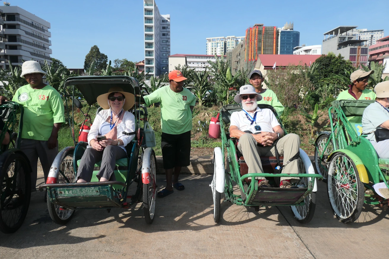 Robyn in rickshaw Cyclo tour of Phnom Penh