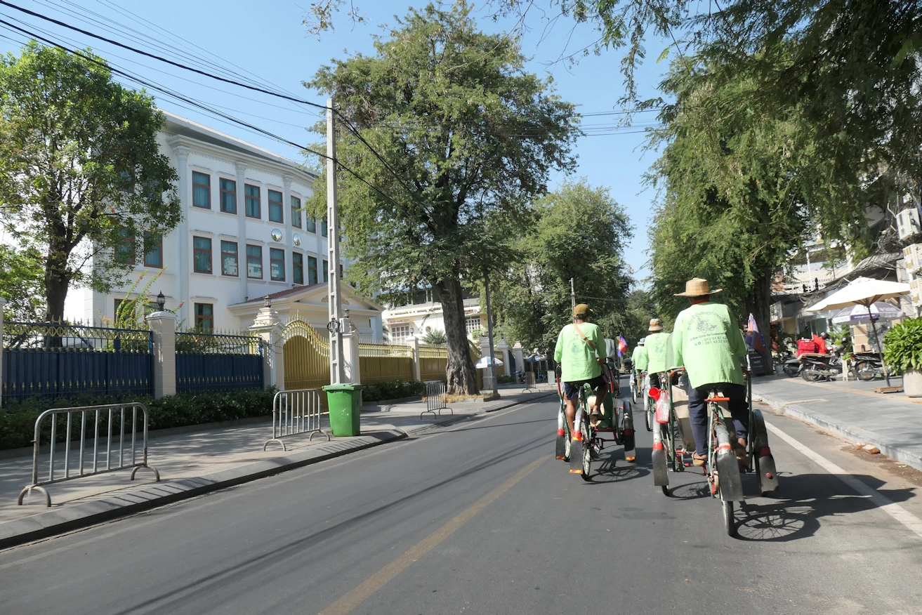 Note the heavy chain on rickshaw Cyclo tour of Phnom Penh