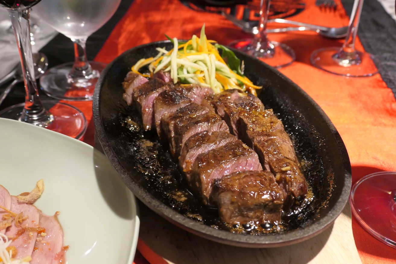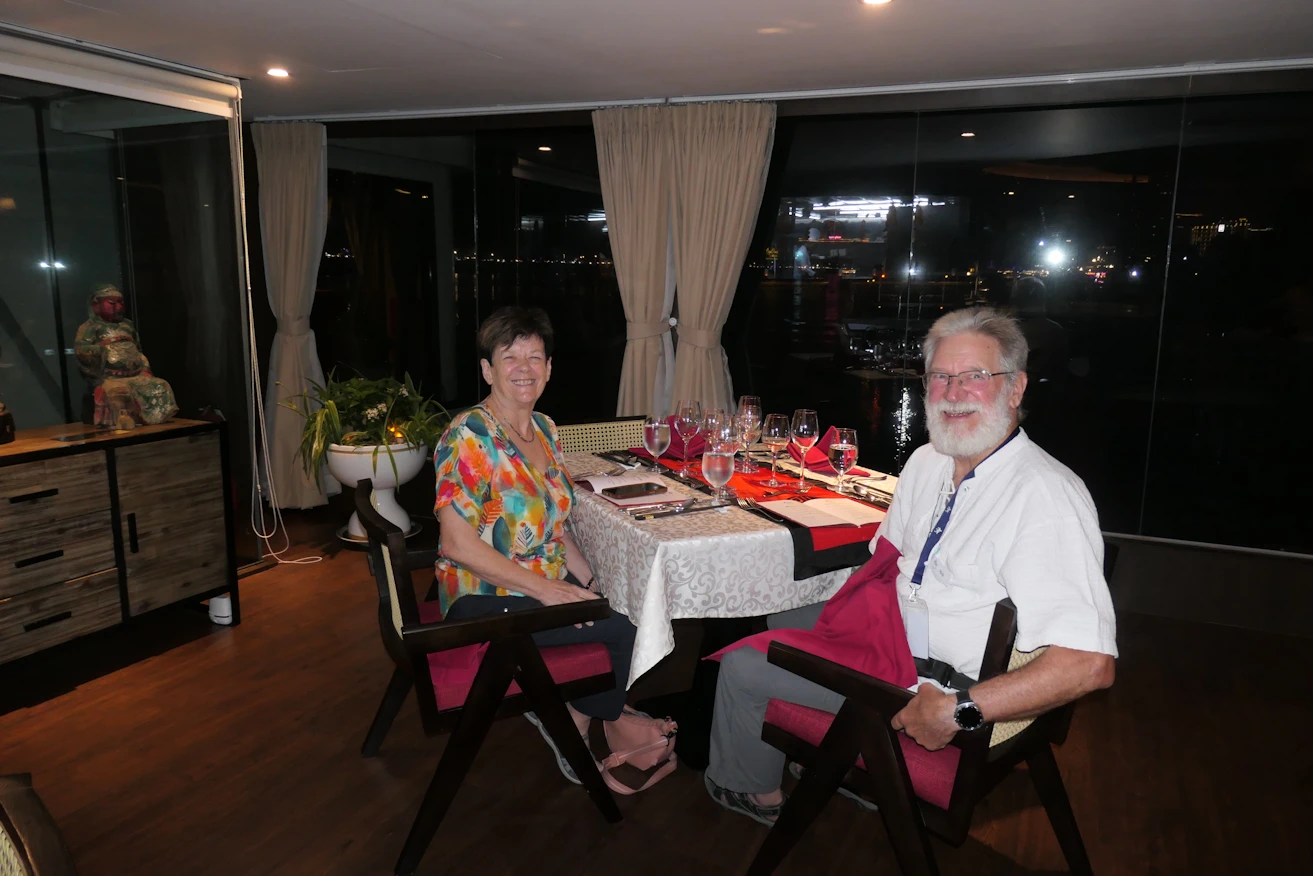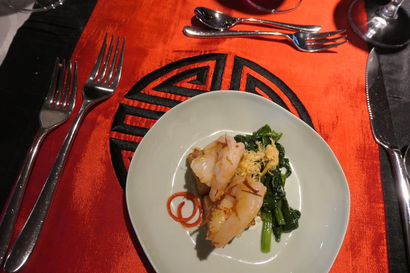 Tiger prawns and seared rice cakes Indochine Resturant on boat