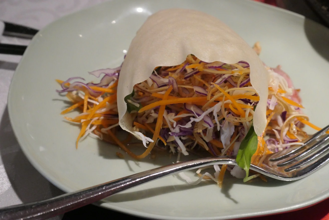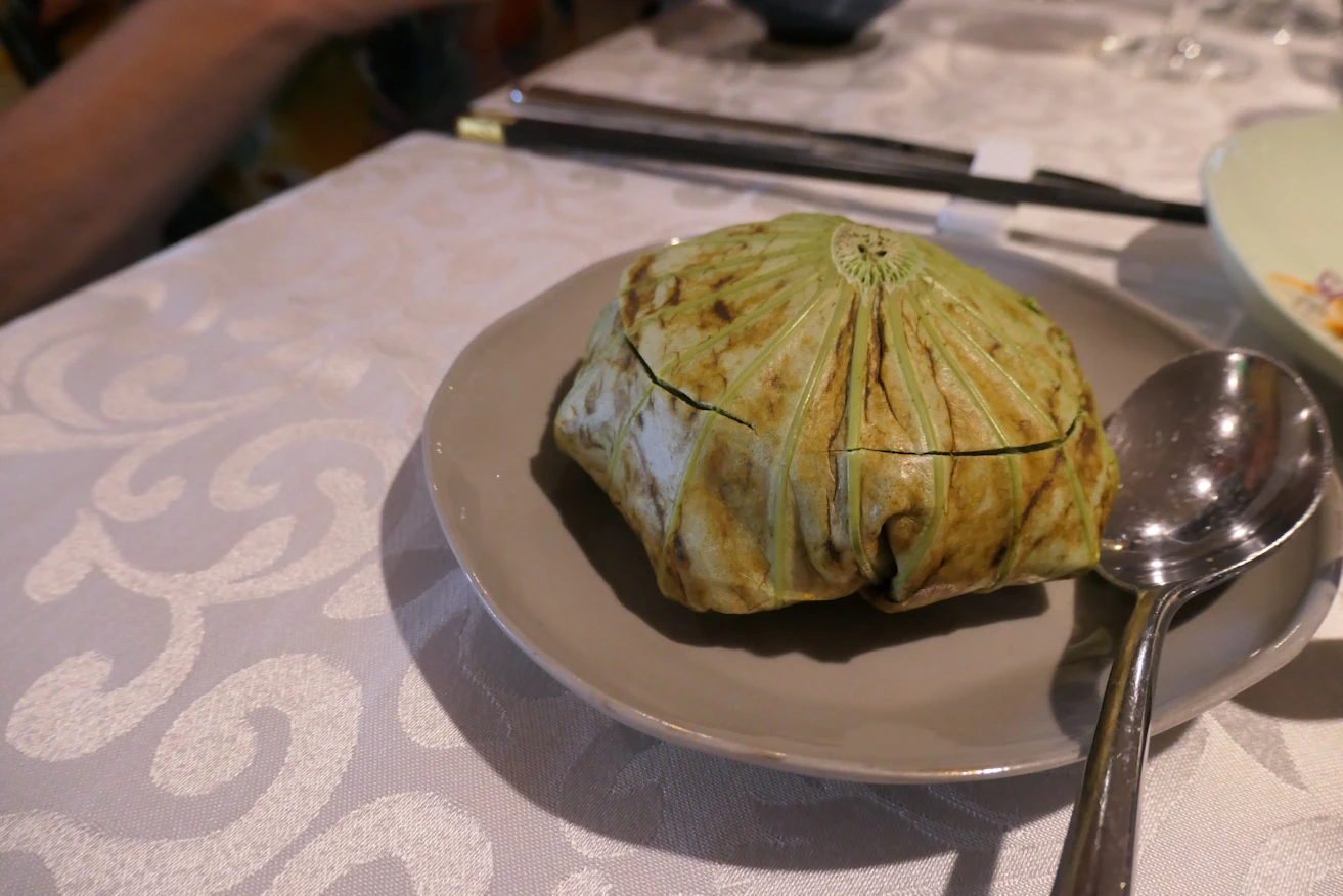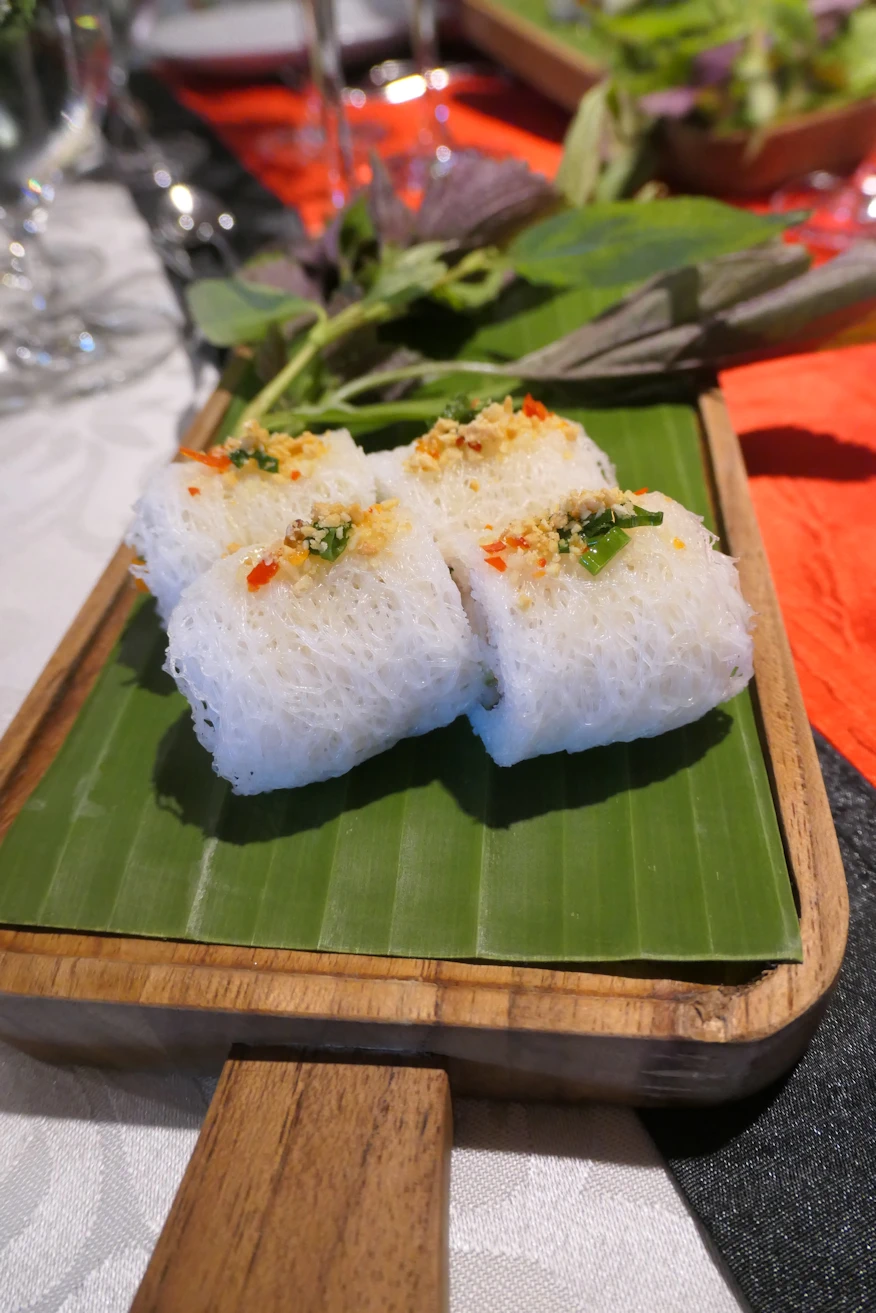 Presentation of fried rice in leaves Indochine Resturant on boat