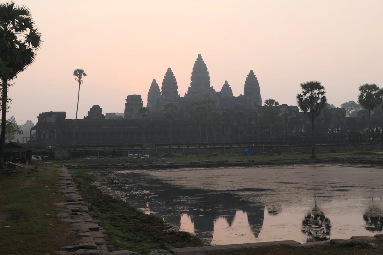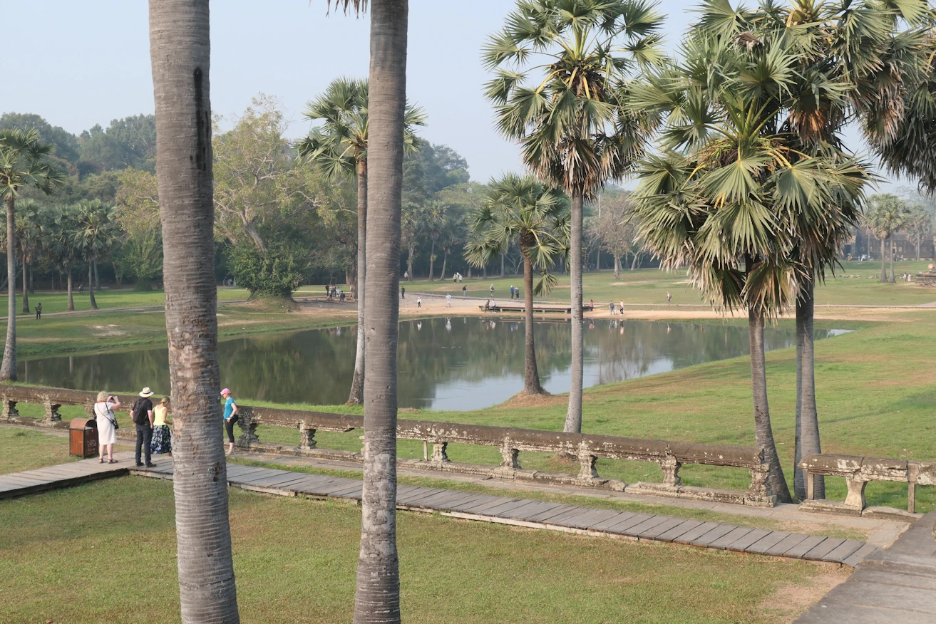 View over reflection pool Angkor Wat tour