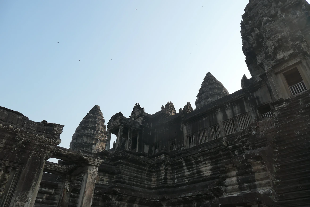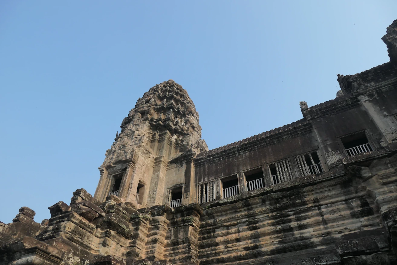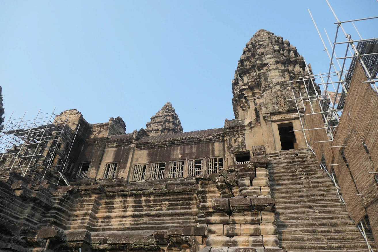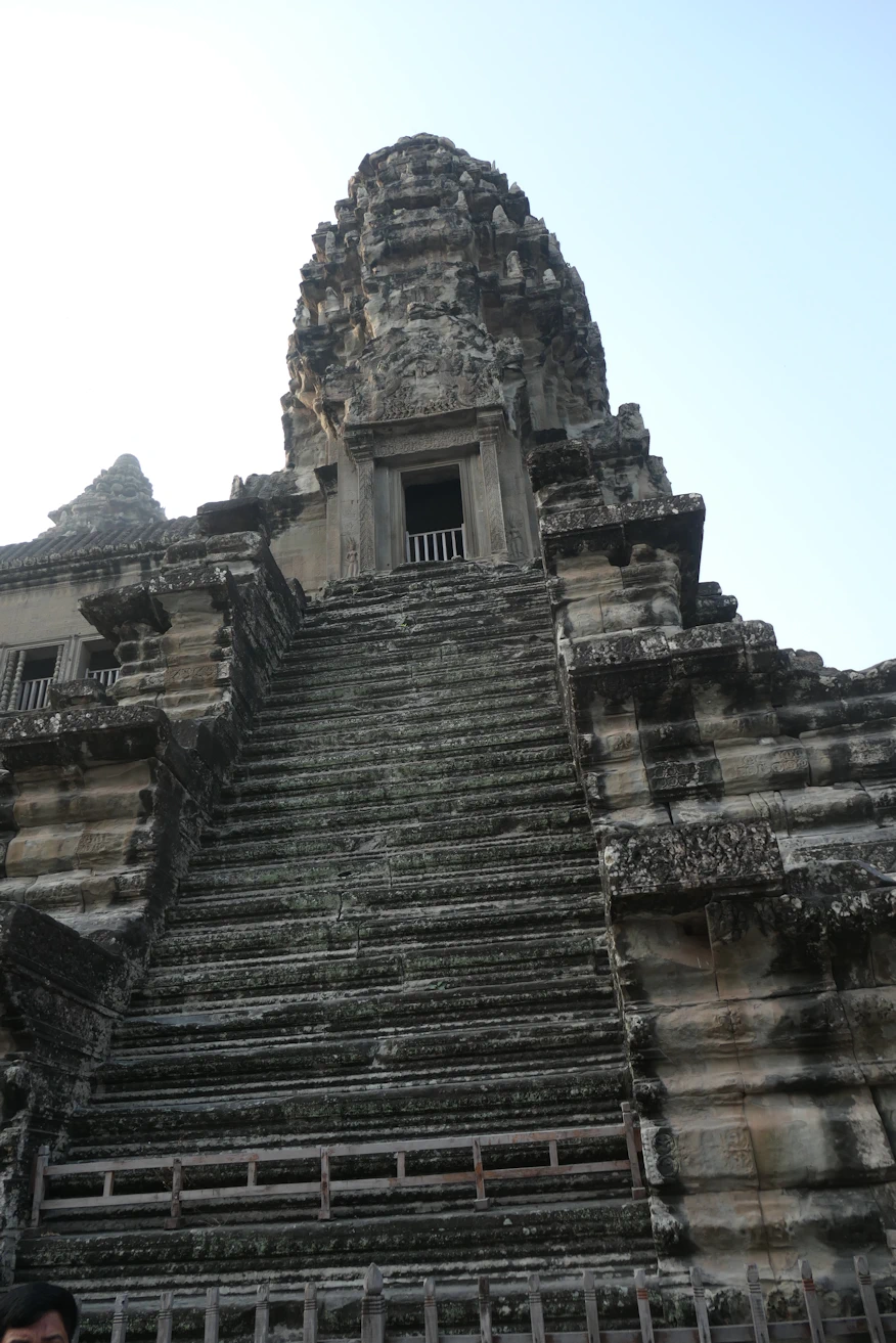 Looking up to third level Angkor Wat tour