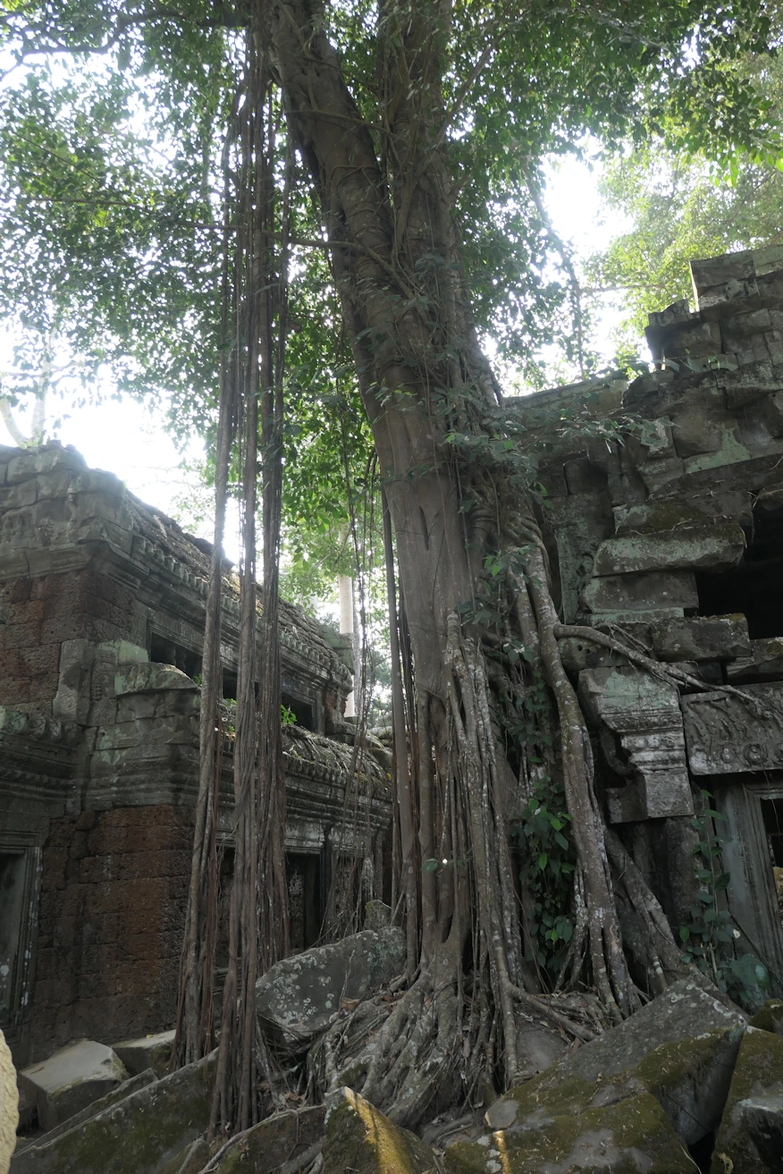 Tree growing in structure + Robyn + Nick Ta Prohm Temple